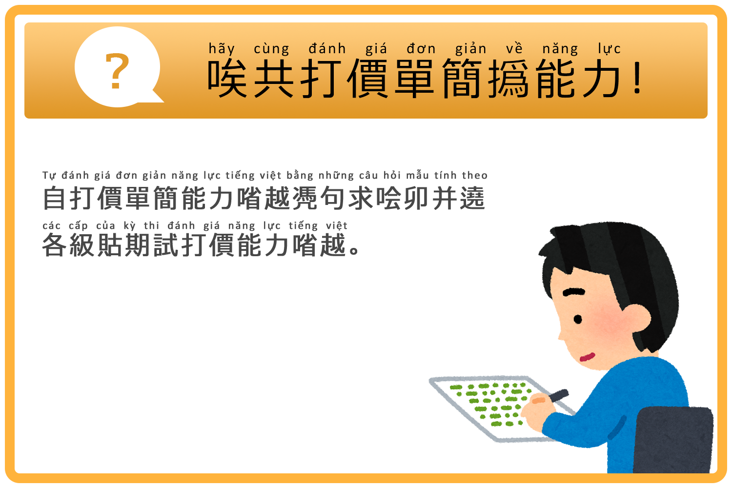- 2024.02.13 登載報告『撝手続対照参照程度CEFR 𧵑期試打價能力㗂越』。